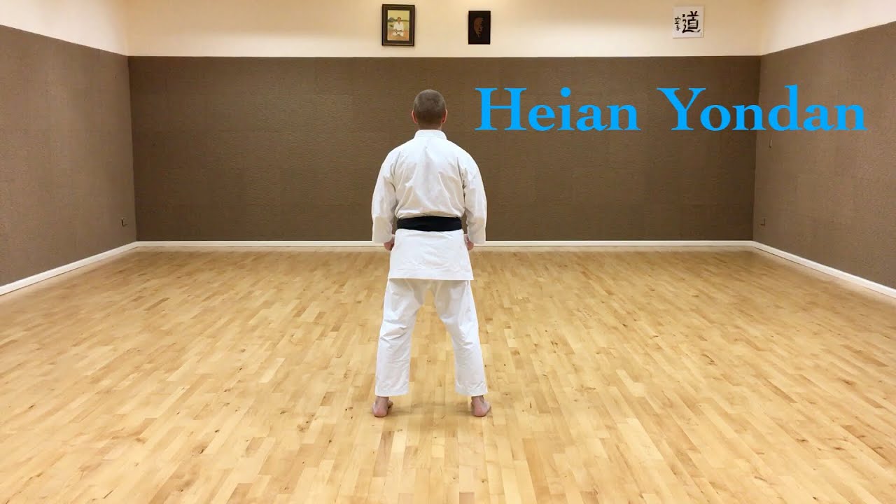Heian é a série de katas iniciais que significa "paz e tranquilidade". Este é o Heian Yondan, o quarto kata da série Heian, que é da faixa branca. Possui 27 Kyodos (movimentos). Os Kiai (gritos de energia) ocorrem nos movimentos 13 e 25. O tempo estimado para a execução é de aproximadamente 50 segundos. A linha de movimento é do tipo "I".