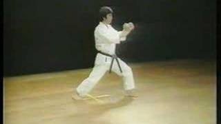 Movimento 1: Não mude a posição dos cotovelos para os bloqueios de nível superior e descendentes. A posição correta é a largura de um punho na frente do corpo. Esta é uma aplicação de um ponto dominado no Heian 3.